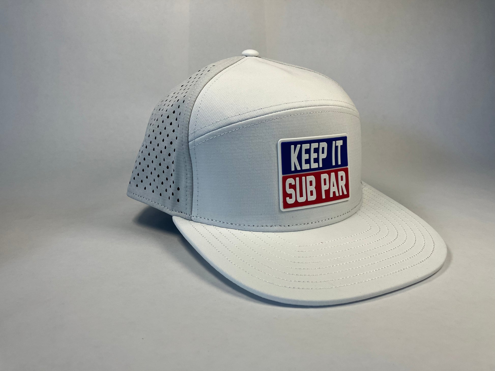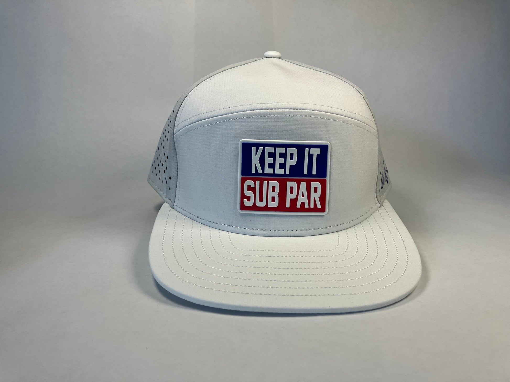 These performance ball caps are made from durable, waterproof & moisture wicking materials. Making sure to hide those sweat stains from a back nine battle was our number one priority. Showcasing our Keep it Sub Par pvc patch up front, nobody will question your dedication to the game!